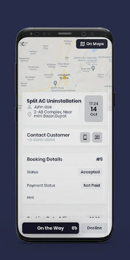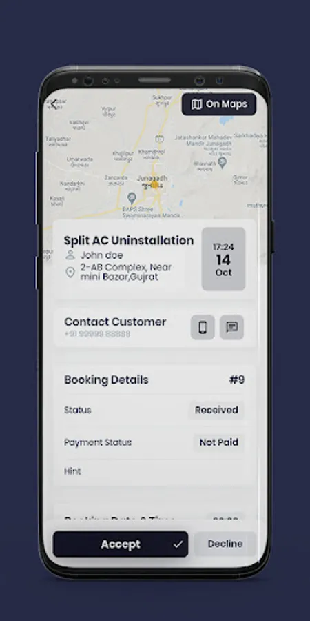 You will then start getting the orders from the customers in the app. As a service provider, you can either accept or deny the order. The customer will also enter the time and address where the service is needed. You can also set different areas where you want to provide the service.