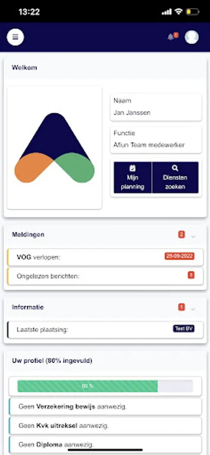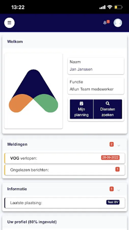 With the Afiun app you stay informed about the latest new services in healthcare through push notifications. At Afiun you decide where and when you work at a high hourly rate. Via the app you can easily keep an eye on your hours worked and build your own profile.