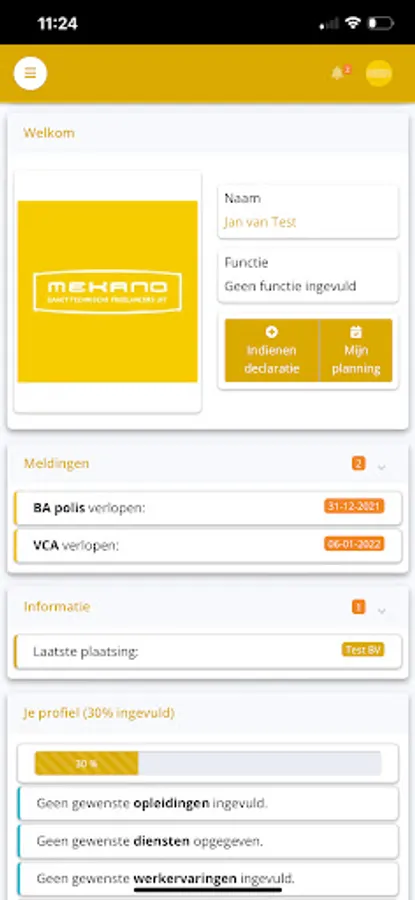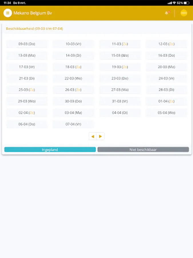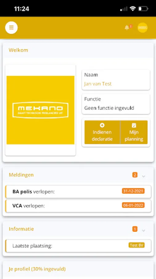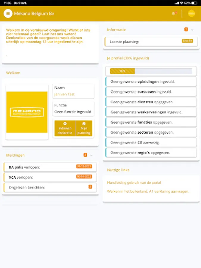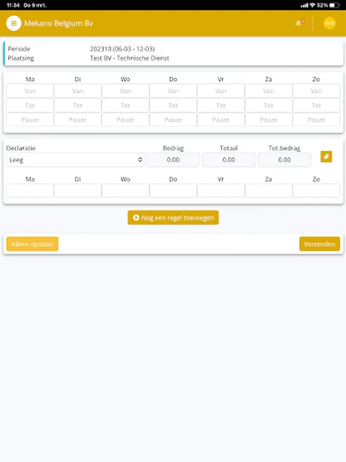 This app has been specially developed for technical freelancers who work together with Mekano Belgium. In this handy app you can easily submit your declarations, view your services and adjust your availability. The app is composed in such a way that you quickly have a complete overview of all assignments you have carried out, your active placements at the moment and you will find a complete invoice overview.