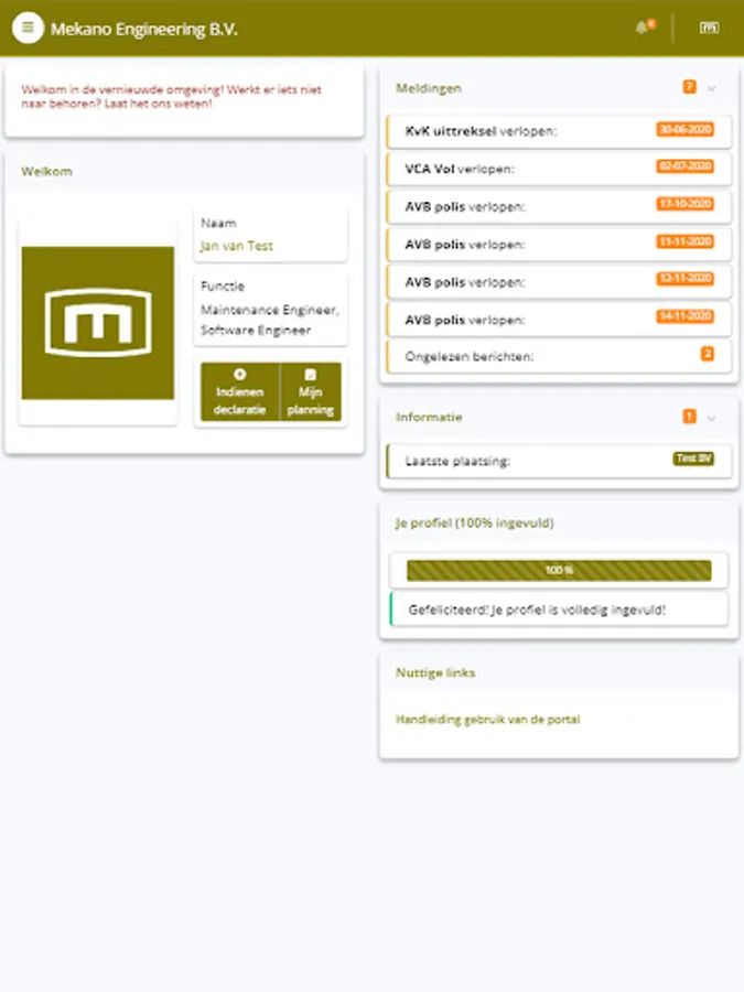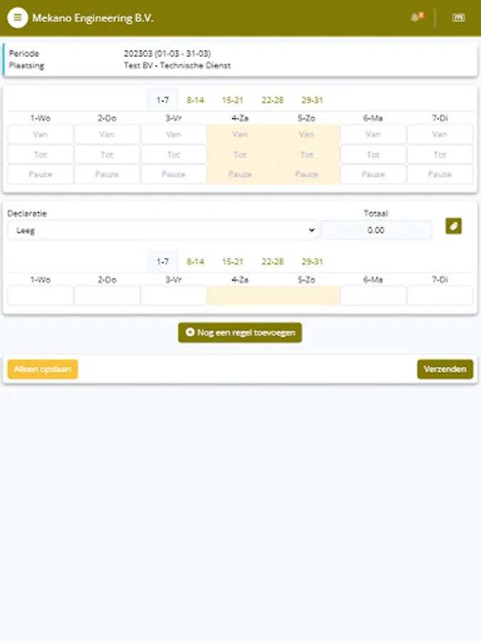 This app has been specially developed for technical freelancers who work together with Mekano Engineering. In this handy app you can easily submit your declarations, view your services and adjust your availability. The app is composed in such a way that you quickly have a complete overview of all assignments you have carried out, your active placements at the moment and you will find a complete invoice overview.