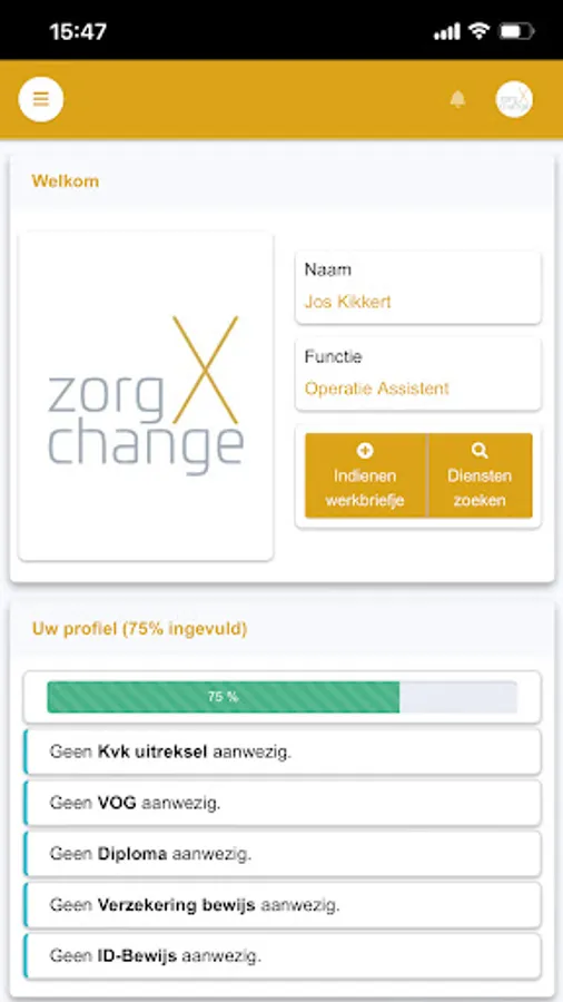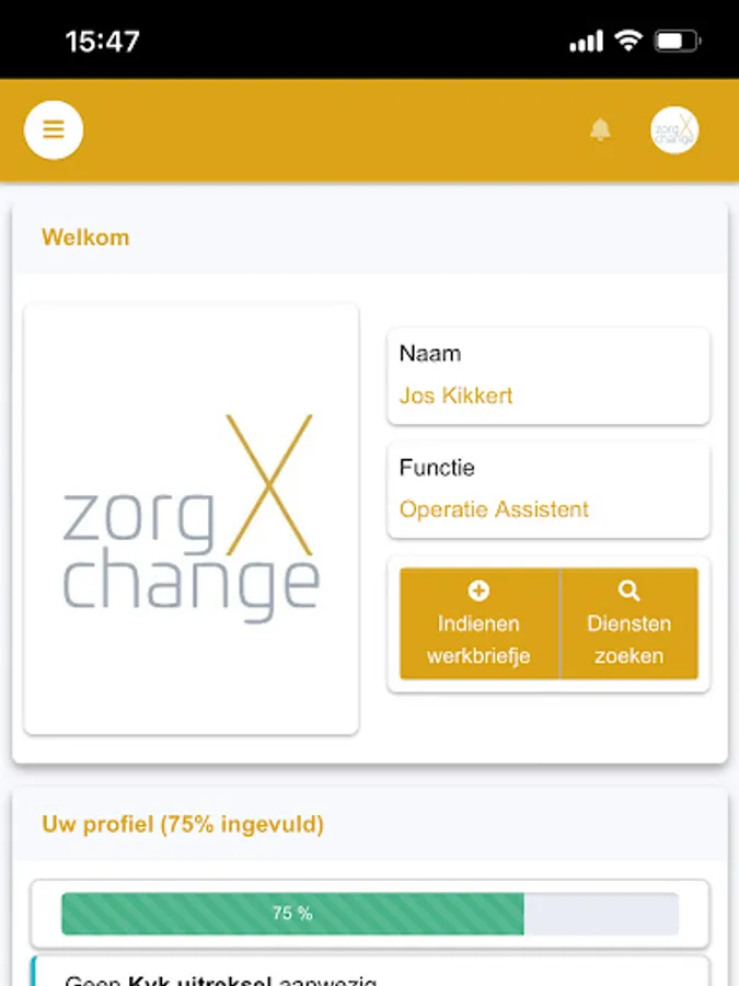 The ZorgXchange App offers the possibility for our employees to submit their timesheets, search for suitable assignments, view their roster and pass on roster wishes, pay slip information and much more.