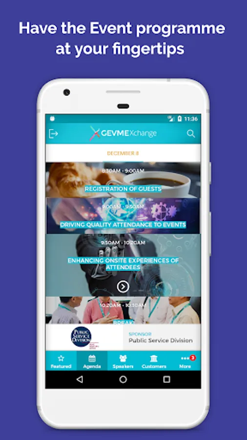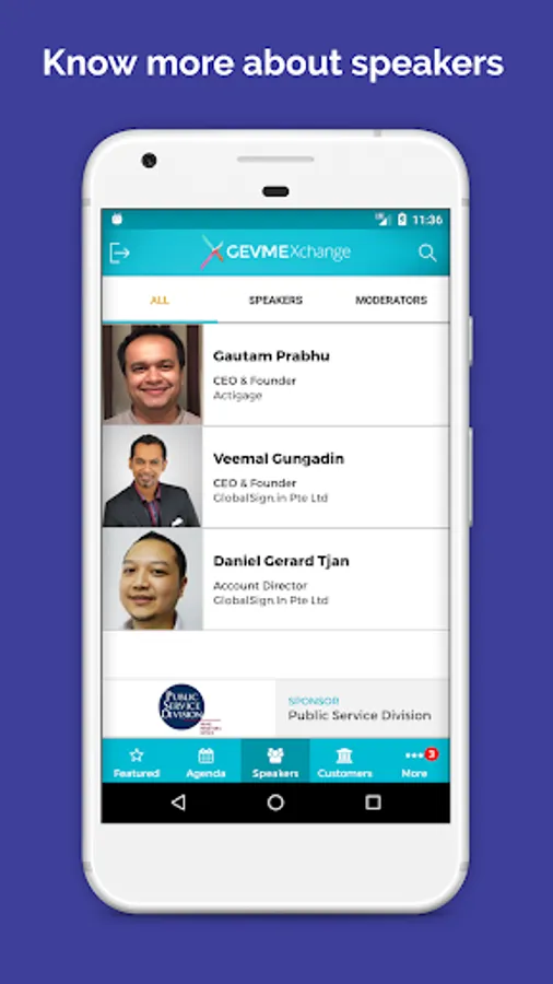 • Check the schedule, speakers, sponsors, exhibitors and other event information.