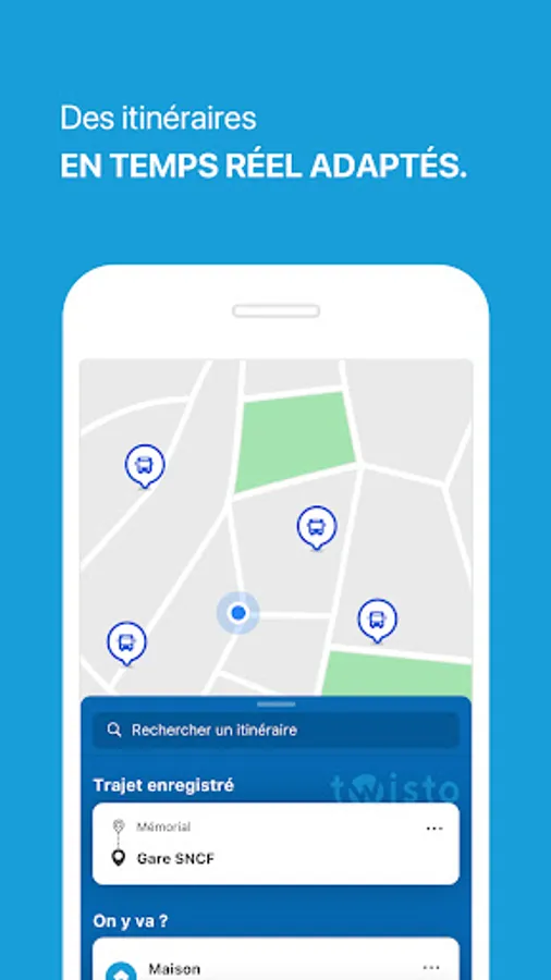 • Route calculation and optimization of your trip: Twisto offers you the best routes for your trip by combining tram, bus, train, car-sharing, but also walking and cycling to always offer you the best solution. adapted to your needs.