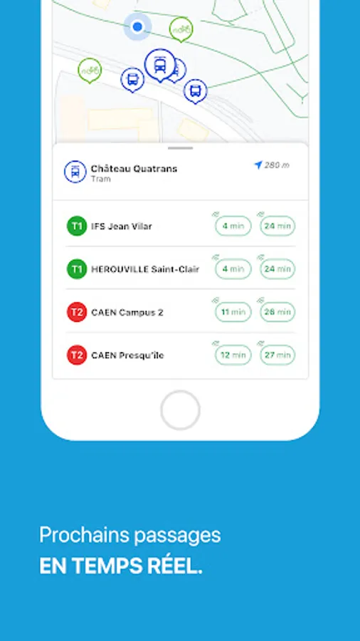 The Twisto app is evolving to better support you. More ergonomic, simpler: it offers solutions in real time and adapted to everyone's needs. Multimodal, it now integrates all forms of transport in Caen la mer: from the tram to the bus, via the city center shuttle, bicycles and park and ride facilities.