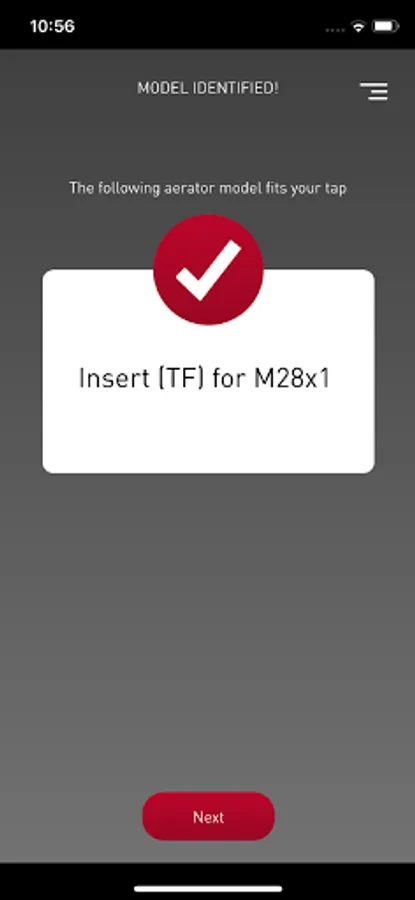 Remove the aerator which shall be replaced from the fitting and mouthpiece, ideally by using a suitable service key. Keep a handy, because depending on the model, the diameter of the aerator must be determined. Answer the questions about the appearance of the aerator. Based on your answers, the app will immediately determine the right model. If the app does not clearly identify your model, your request will be forwarded to our experts and you will receive feedback via push message within 2 days.