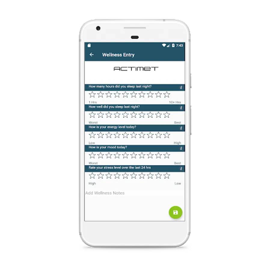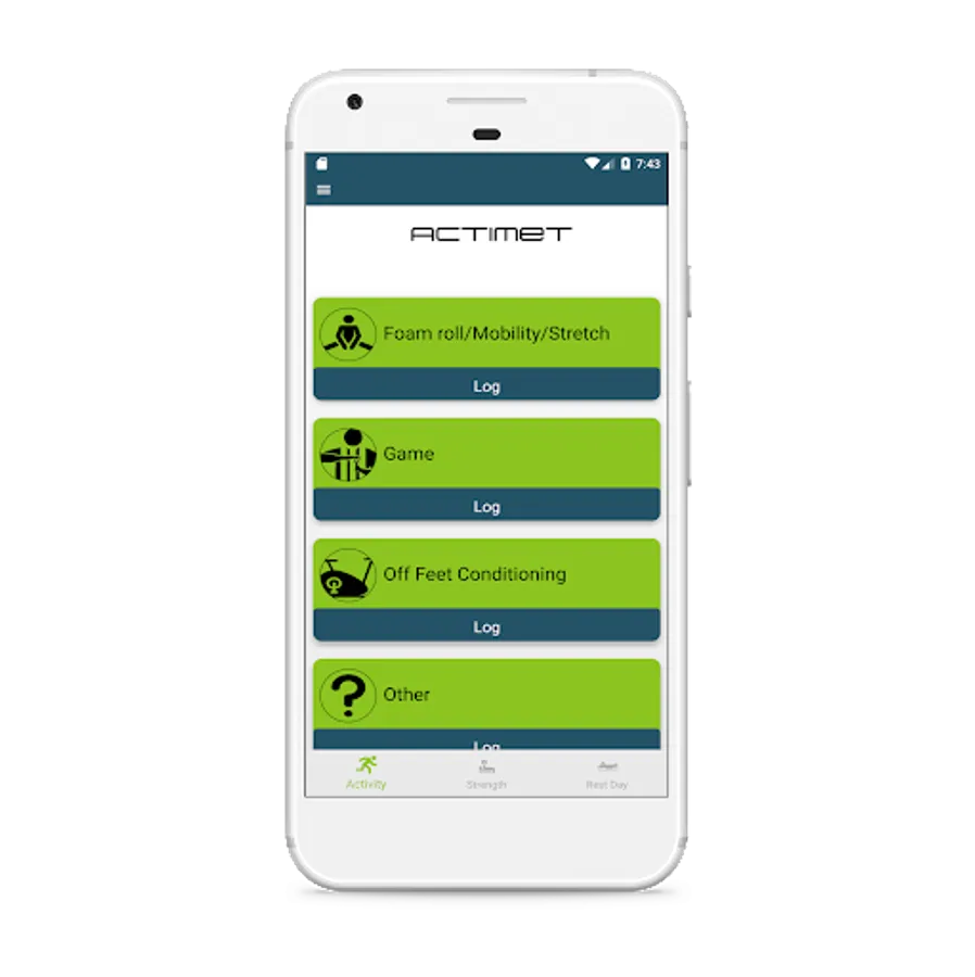 The Actimet mobile App allows the athlete to easily share and store data on training and rehab sessions, provide update on daily wellness and injury status, Review Sessions and future training schedules and easily provide feedback and rest day info to their coach.