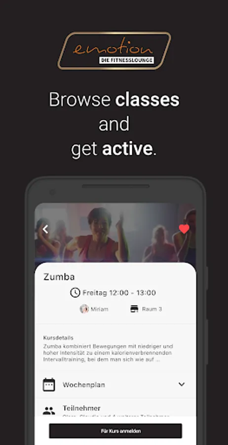 * Create your own digital workout plans or be inspired by other EMOTION FITNESSLOUNGE members.