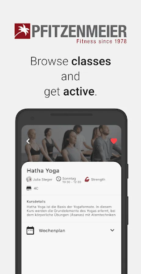 With your Pfitzenmeier app you are always in the loop on the goings on in your gym. Course schedules, Equipment and much more are available anytime. Want to visit another Pfitzenmeier gym? Get all the information on all gyms right here on your phone. Quick and easy.