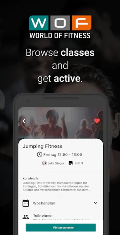 Create your own workouts and watch professional exercise videos and classes from the experts at the WOF. Track your training progress at all times.