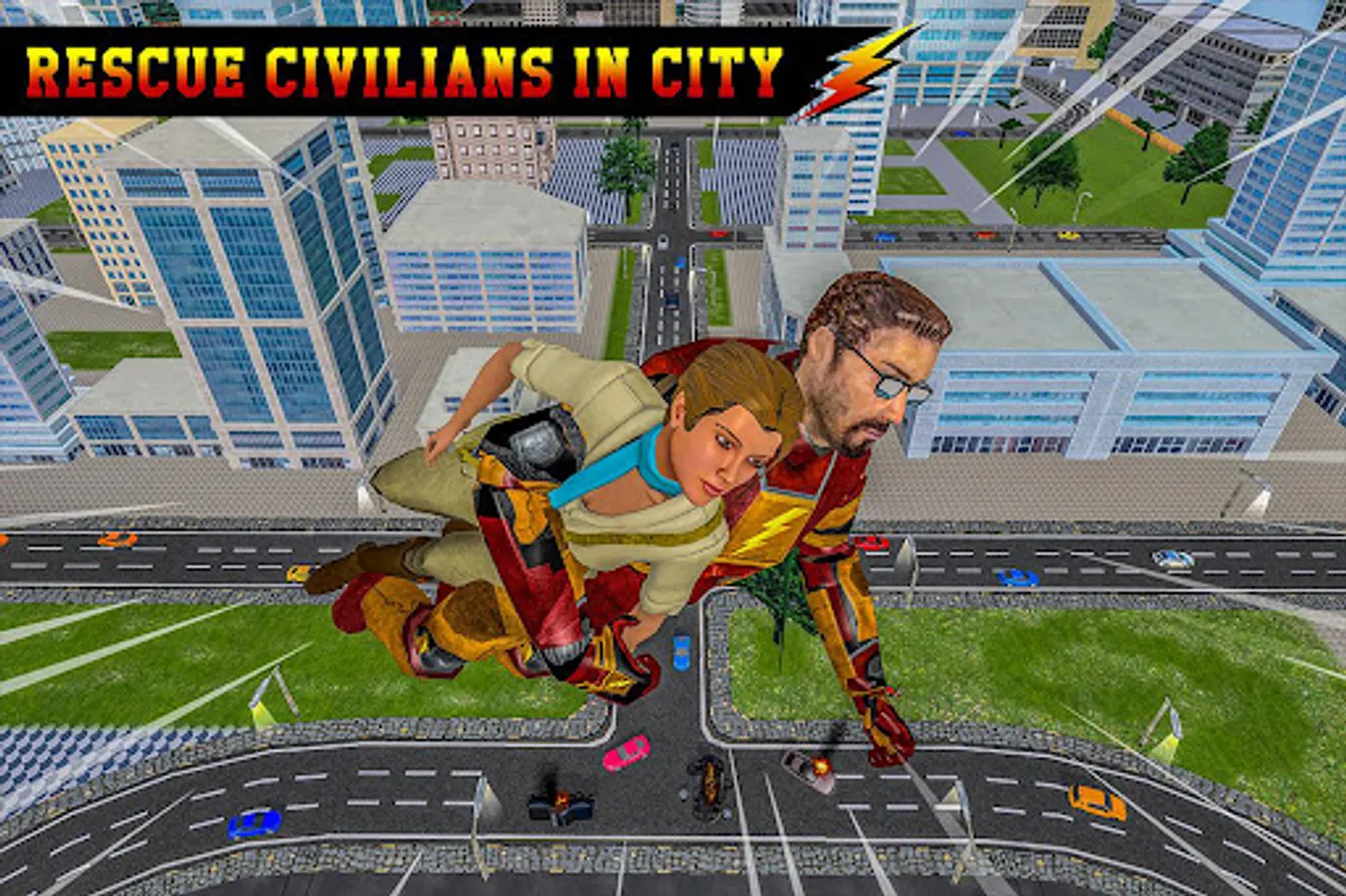 When your iron suit super light speed hero crime simulator will be back in the city for rescue mission, the grand boss of the grand gangsters and robot enemies will try to escape in the car. Stopping the grand gangster boss to escape and beating the grand boss of gangsters and robot enemies to death will be the ultimate rescue mission of your mighty iron suit speed super light hero. You can choose and drive any car from the grand city to chase the car of that grand boss, hit and smash the car of the grand boss to kill him.
