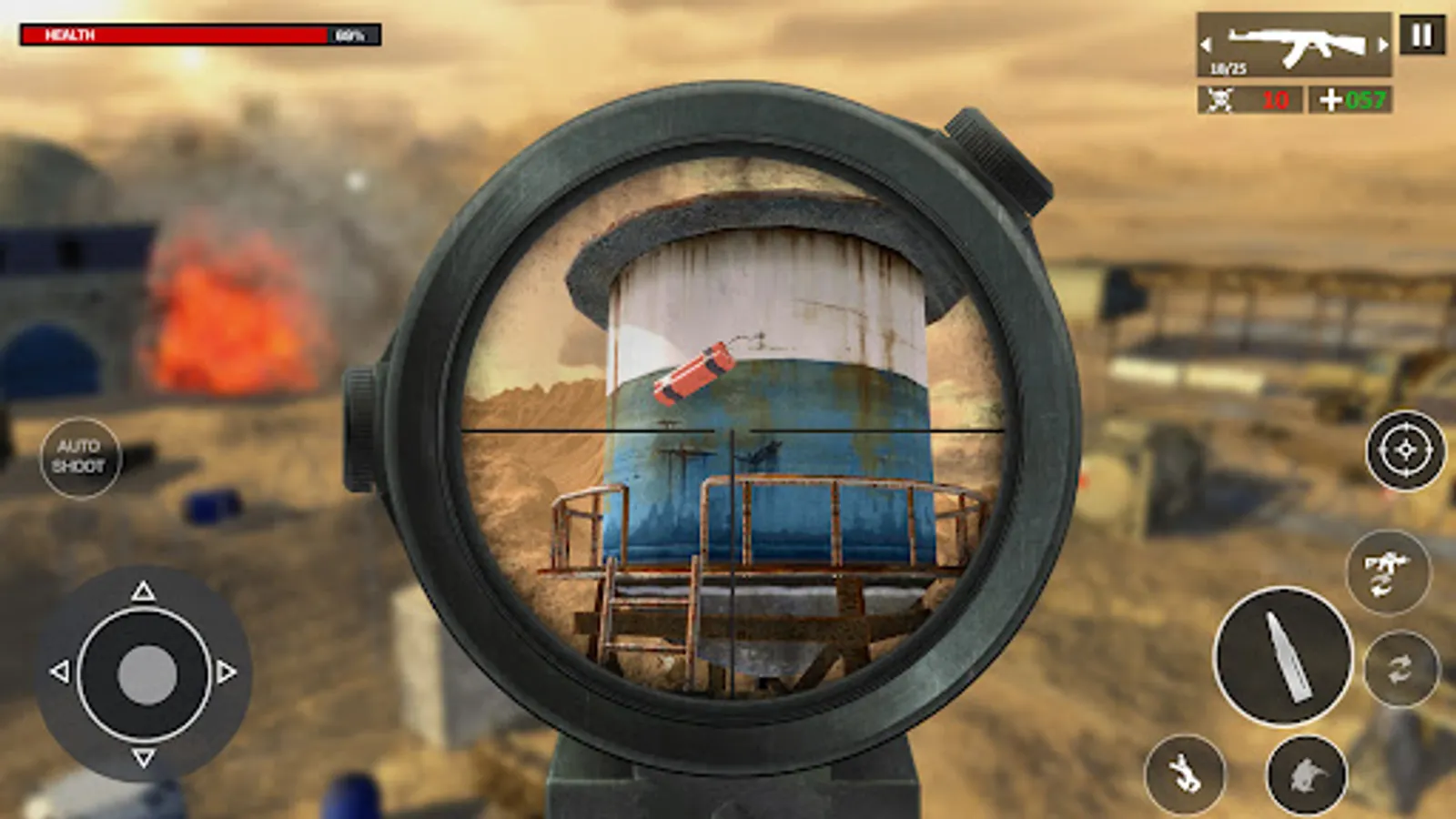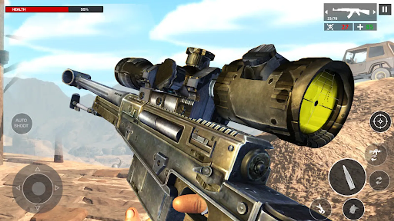 Take your position at the high point to take aim and target the enemies. Desert is full of hidden terrorists under the dunes. Observe carefully to take down enemies with your skilled fps sniper shots.
