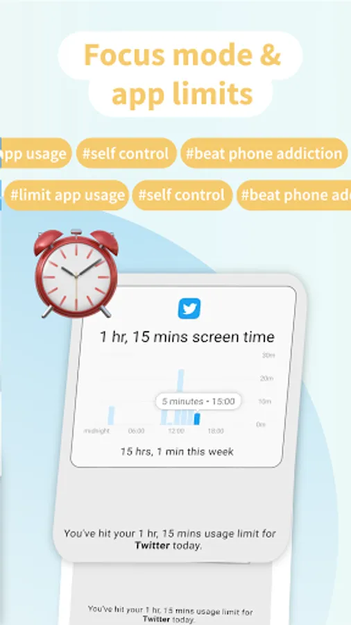 ★ App usage limits: temporarily block any application that you are over-using and stay focused.