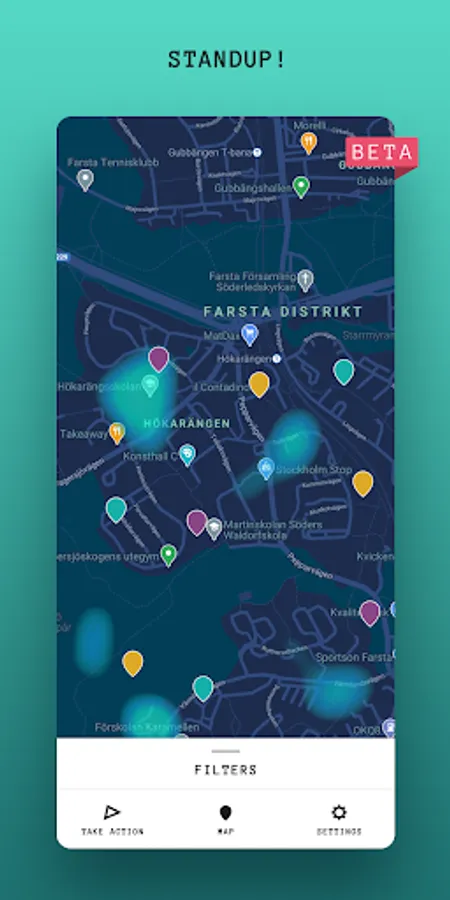 Men först: Du som laddar ned appen är en av de första på plats. Utveckling pågår och appen är i tidig betafas. Ju fler, desto tryggare – bjud gärna in familj, kompisar och andra som står dig nära direkt via appens Inställningar! Action For Society fyller på med fler användare och nya funktioner hela tiden. Om något är oklart eller inte fungerar i appen, gå bara in i Inställningar och skicka feedback så att vi kan lösa det!
