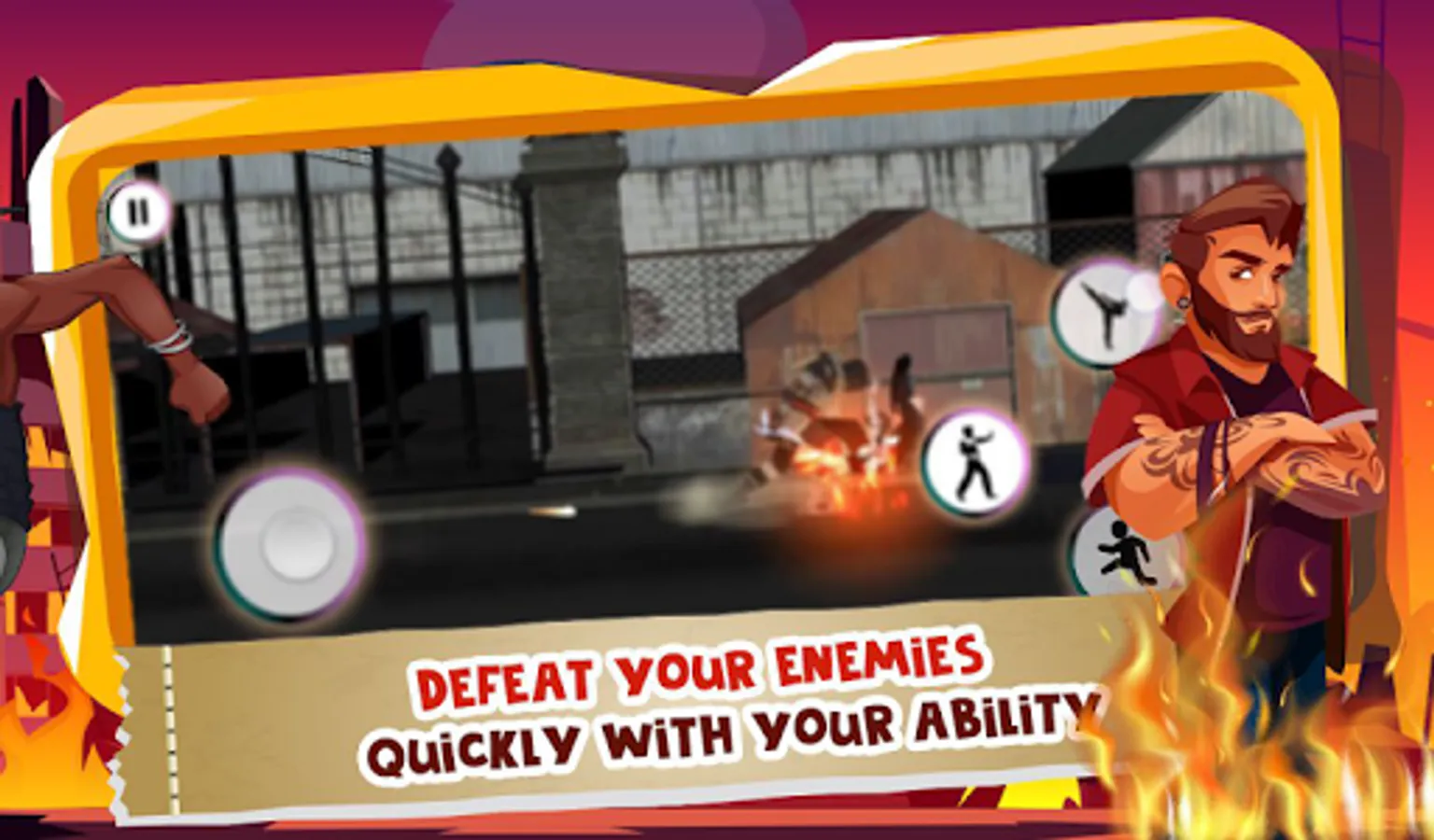 You will keep running and keep the opponent. You will have to give chance to survive so be a hero fighter smash all over the street fighters and |Street Legends Fighter | game. You are gear up and active your |kung fu fighting| skills and hit all over the wrestlers. It has a very easy and controllable system for the game play. It provides different buttons for different purposes. You fight the fighter and again give different fighters to fight it all of them and win the level. You win the previous level automatically other level is unlocked.
