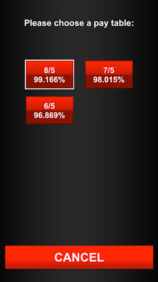 1. Select the game variation (i.e. Jacks or Better, Double Double Bonus, Deuces Wild, etc.)
