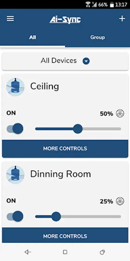 ◎Group Control : Add your fans as ''favorite' group and turn it all ON/OFF.