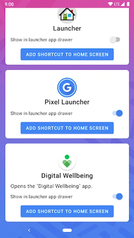 Pixel Shortcuts is a helper utility that makes it easier to load apps already on your device that for whatever reason don't appear in your launcher. Digital Wellbeing is one such app, but there are others, especially system launchers such as Pixel Launcher, Android Launcher and Samsung Experience Home.
