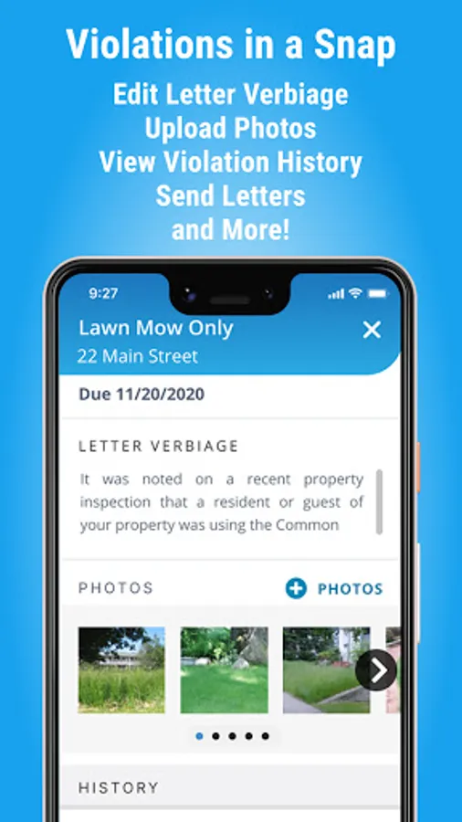 SnapHOA makes violation inspections and CC&R compliance a snap! Automatic letter generation, GPS tracking, offline mode, amenity inspections, and more.