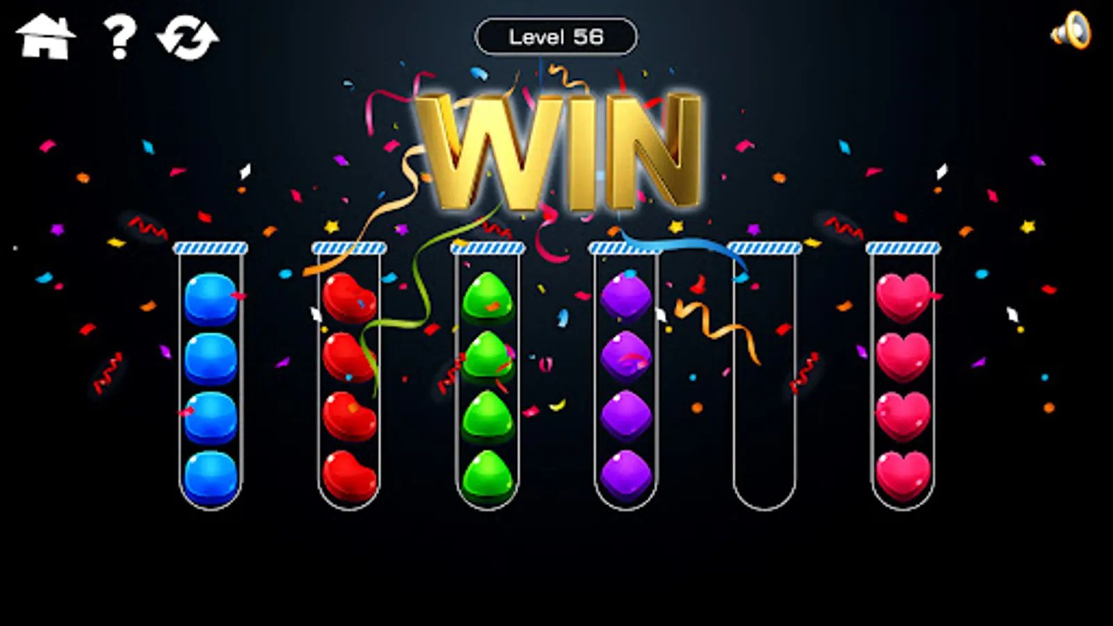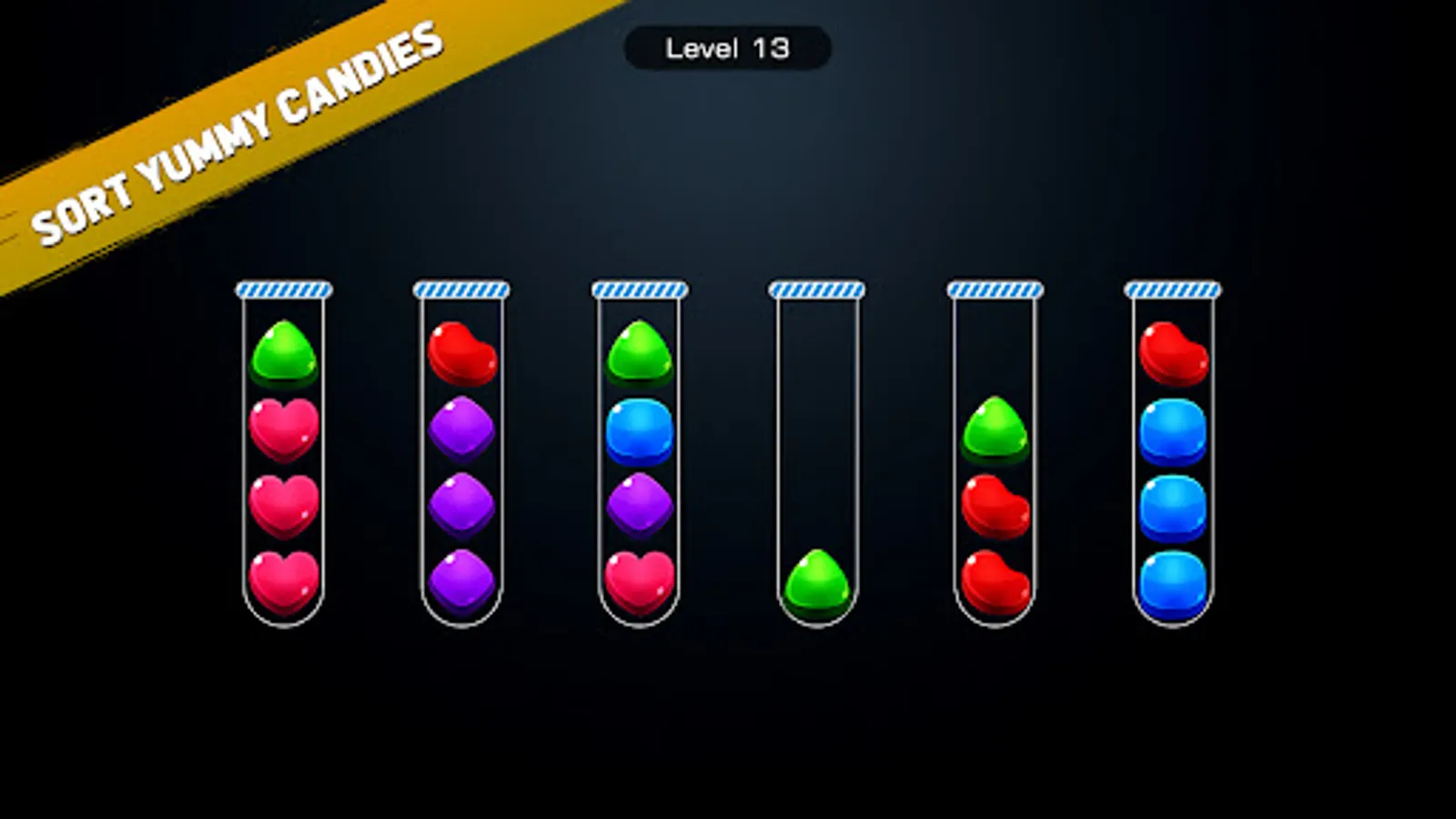 Try colorful adventure of candies, sort fast and test your brain with puzzle sort. Tap to tap on the jar to select candy and tap on the same candy jar to sort. Sorting is fun when it comes to yummy candies. Try different levels and mode for new challenges to sort candies. Play hundred of challenges to try different modes. Sort colored yummy candies in the jar to solve candy sort puzzle.