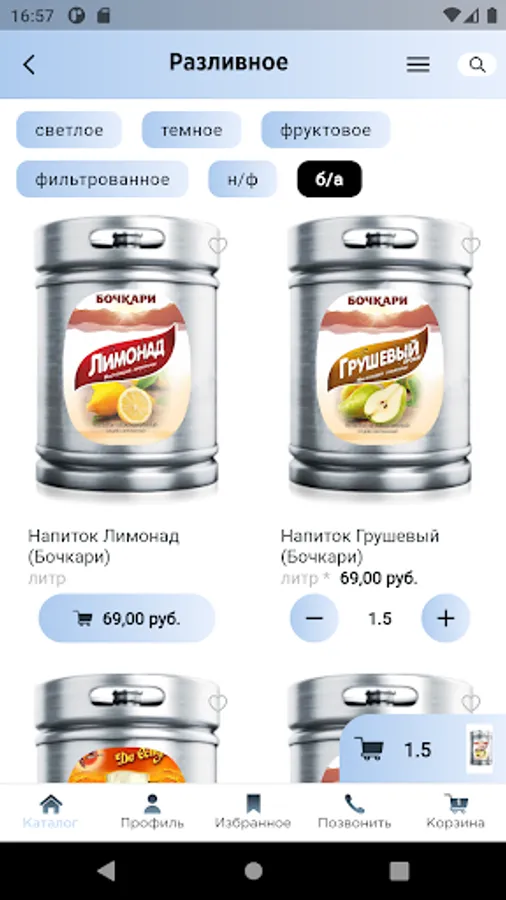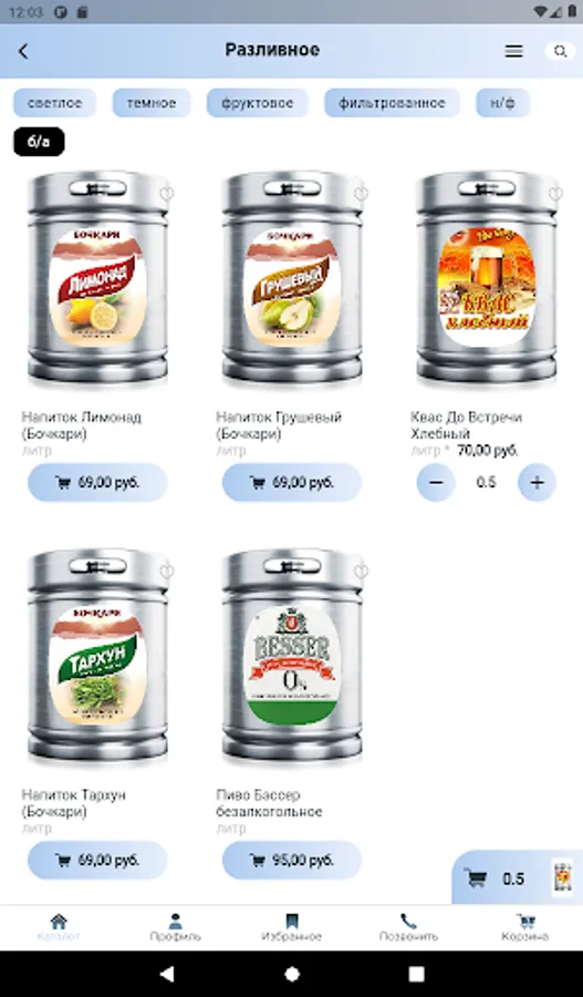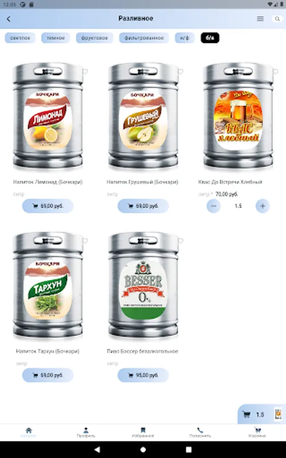 In the mobile application of the Center for Draft Beverages Bereg, you can: