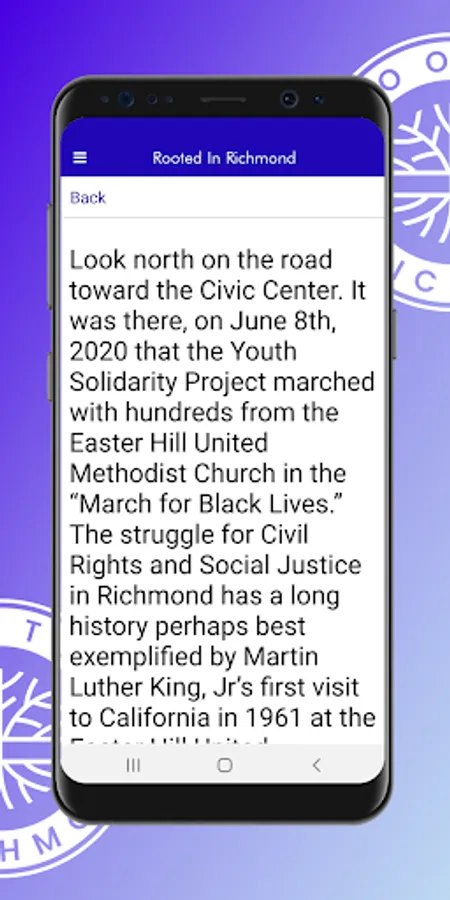 Hundreds of years of Richmond, California history in the palm of your hands. Hear the stories of the people and places of Richmond through exclusive audio interviews, 3D models of Richmond's historical artifacts, and dozens of vivid historical images. This tour will automatically trigger as you pass by stops related to Richmond's historic places and people, including: Pre-WWII Japanese rose nurseries; the Pullman Palace Car factory; Social Justice and Civil Rights in Richmond; a WPA-era mural rediscovered in a post office basement; Ohlone shellmounds; and much, much more.