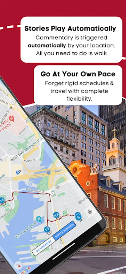 Start in the Boston Common or Bunker Hill Monument and tour with total flexibility. Featuring riveting stories, a phenomenal narrator, and easy automatic audio, this app puts exploration in the palm of your hand!