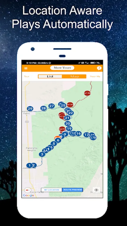 The app knows where you are and which direction you are heading, and plays audio automatically about the things you are seeing, plus stories and tips and advice. Simply follow the GPS map & the routing line.