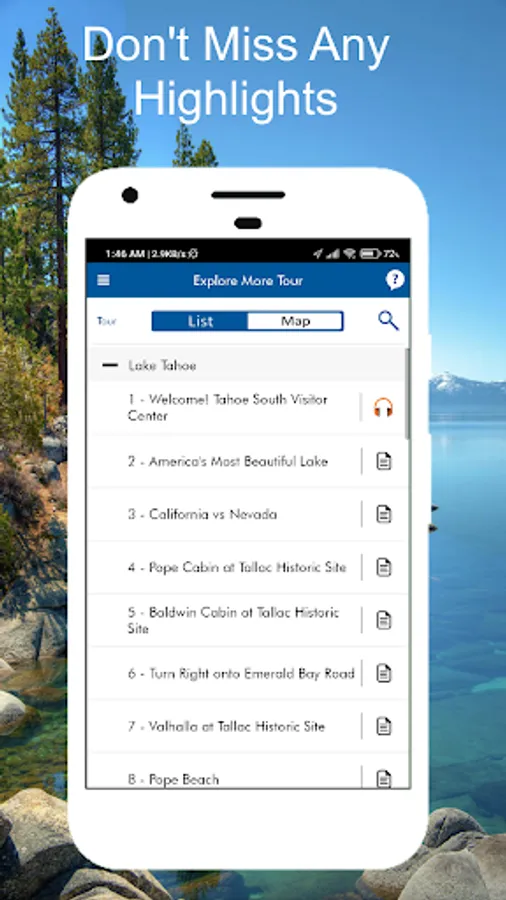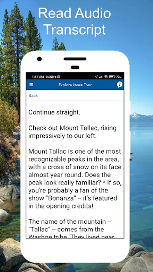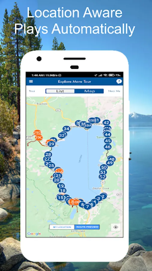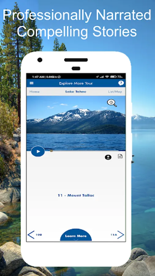 Welcome to the narrated, offline, and GPS-enabled driving tour all around Lake Tahoe rated America’s Most Beautiful Lake by Action Tour Guide!