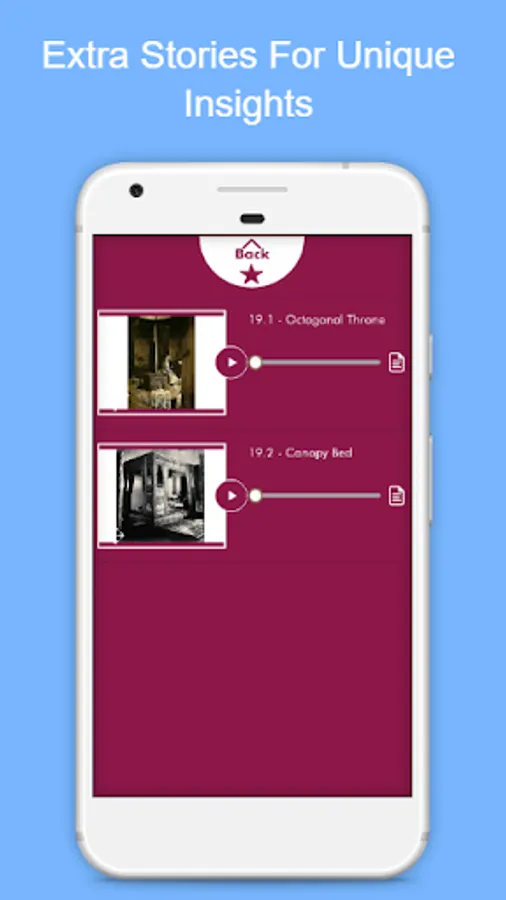 Fully automatic: Each point of interest along the tour has a narrated story, narrated directions, and helpful images, gifs or videos. As you walk along the path and approach a pin, it’s story will automatically pop up and start playing.