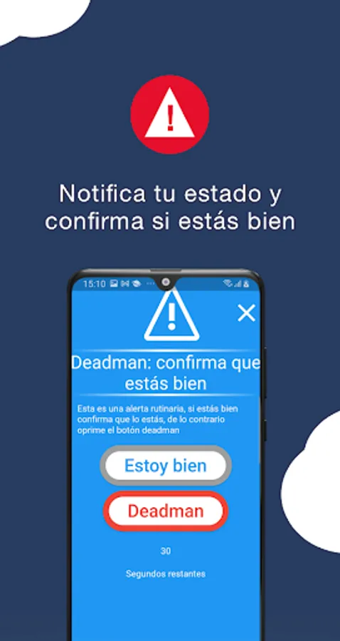 OnBrain también incluye el sistema de CONSULTA DEADMAN, un módulo que te preguntará periódicamente mediante una notificación sobre tu estado, de esta manera el centro de mando sabrá si te encuentras bien o has tenido un accidente, mejorando el tiempo de respuesta al enviar un equipo de socorro que vaya en tu ayuda lo más pronto posible.