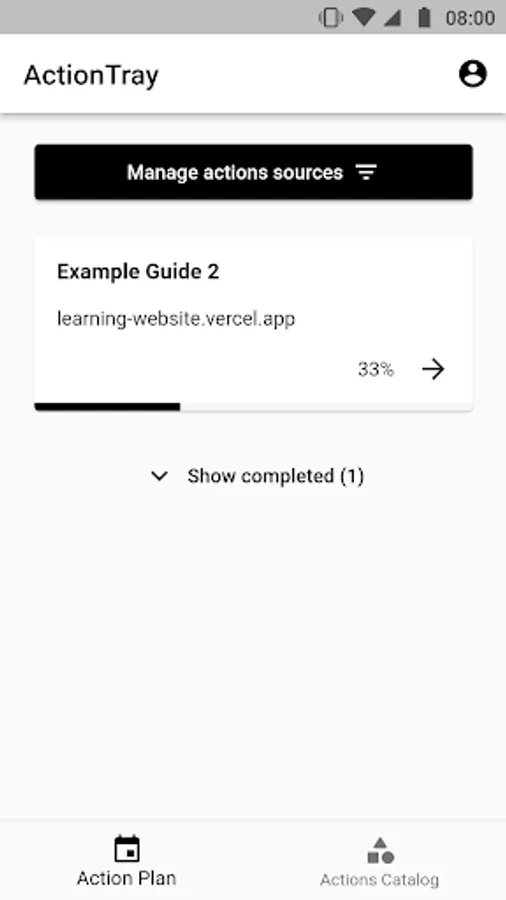 Add any web source of actions you want and track its actions state in the app. You can track actions state from all web sources i.e. websites which implements Web Actions API described at: