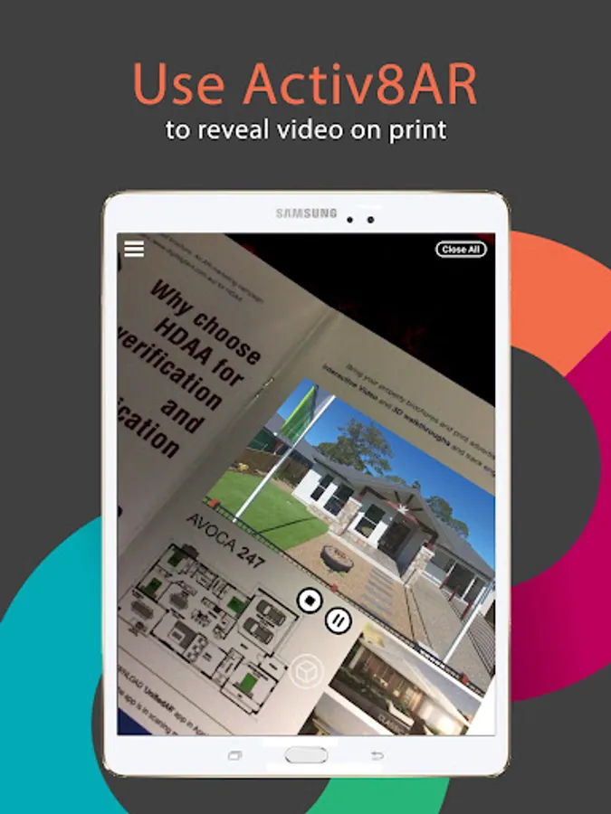 Activ8AR is simple to use. Download the app and scan the augmented reality enabled markers to engage in interactive video or 3D content.