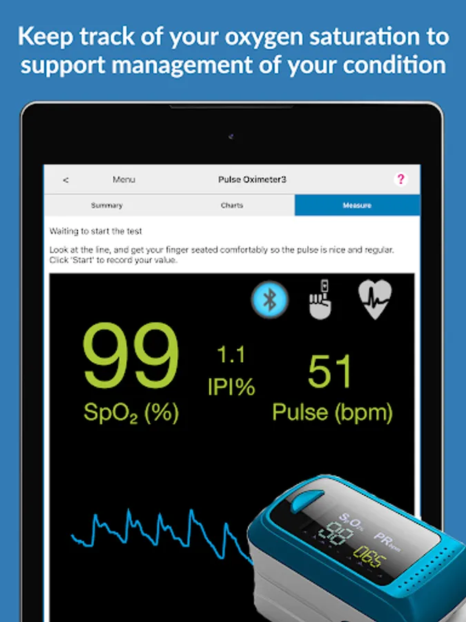 • Oxygen Saturation using our connected Pulse Oximeters.