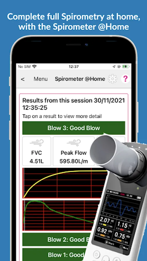 • Lung Function (Peak Flow, FEV1) using a SmartOne Peak Flow Meter.
