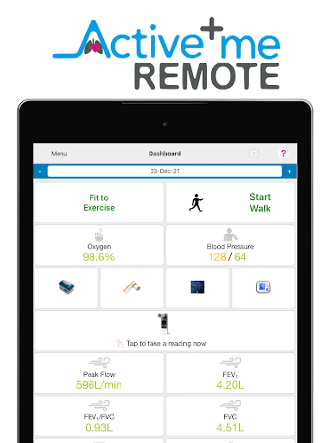 • Full Spirometry using an Activ8rlives Spirometer @Home.