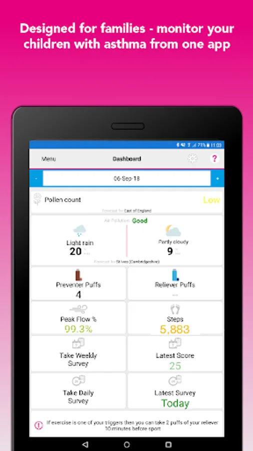 Asthma+me App is a Class 1 medical device Self-Care solution to support parents and carers of children aged 6-12 who have moderate to severe asthma.