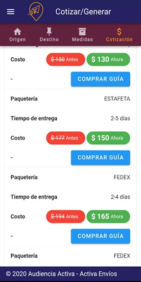 Quote prices between packages and find the ideal price in the Activa Shipping quote.