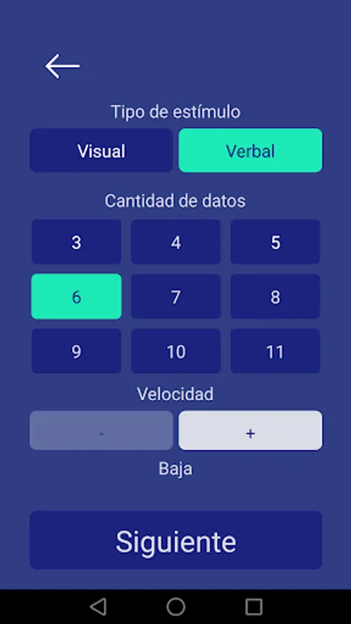 - the type of stimulation (Verbal or Visual)
