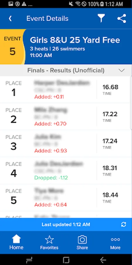 • Let fans send your meet viral as they share their favorite swimmers’ results instantly via Facebook, Twitter, email or text