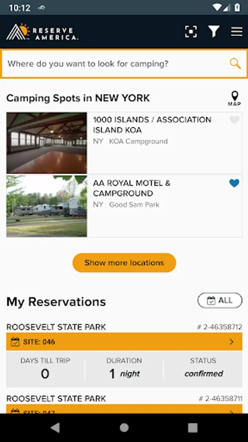 Looking for a campground for a future camping trip, or need to find a campsite now, for tonight? Use ReserveAmerica's mobile app to search for available camp and RV sites, yurts, cabins and more in state, federal, and private parks and campgrounds across the U.S. Search by location, date, or amenities, and display search results on a map... View campground details, reviews and photos... Even save your search settings to make finding your next campsite as easy as opening the app!