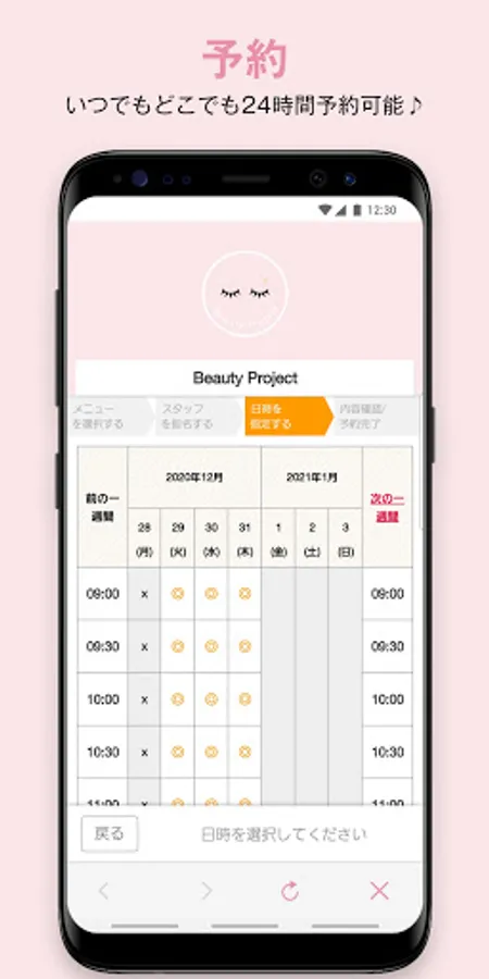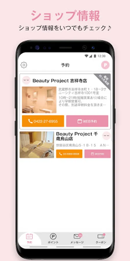 You can make reservations for Beauty Project Kichijoji and Chitosekarasuyama stores 24 hours a day from the app.