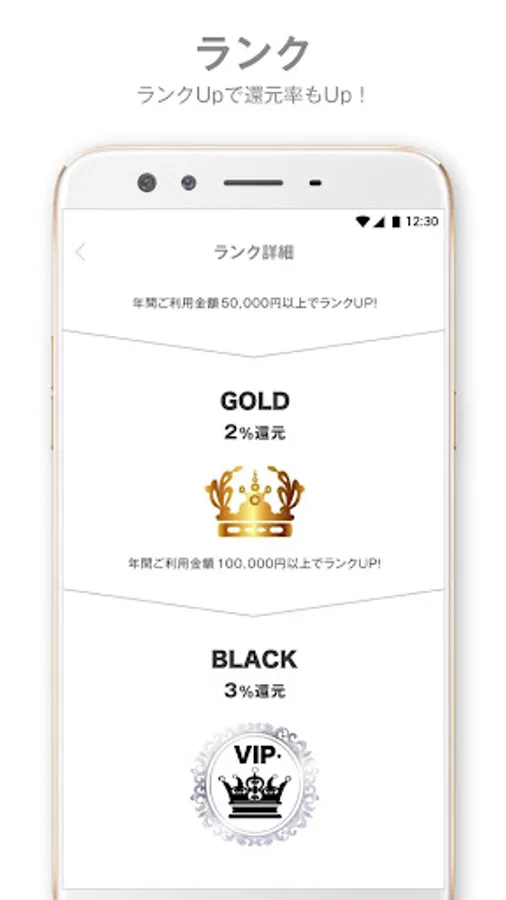 Rank up according to the amount you use! Depending on the rank, the point return rate etc will be given preferential treatment. (BRONZE (1%) - SILVER (1.5%) - GOLD (2%) - BLACK (3%))