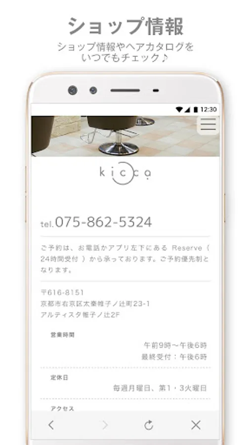 Official application of hair salon "kicca (kikka)" in Taotaku kikoji