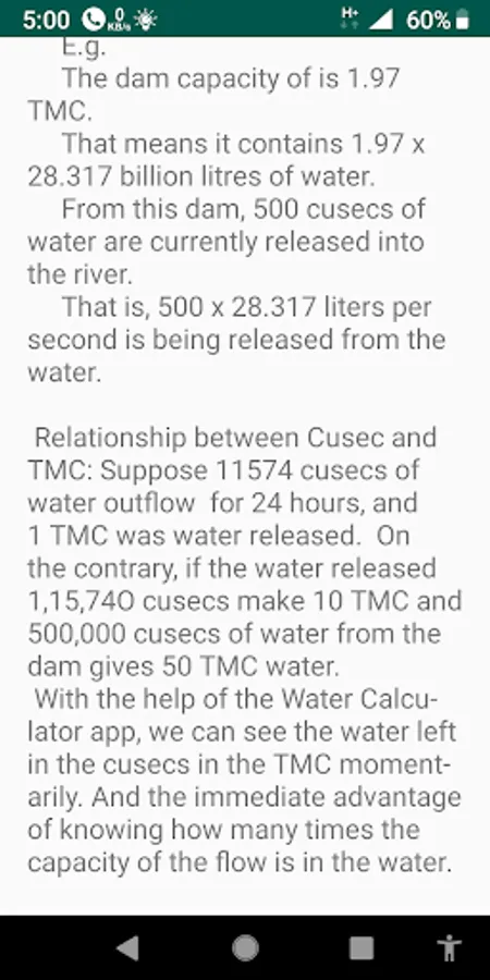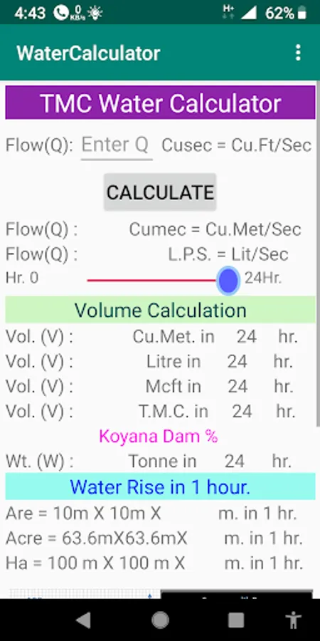 With the help of the Water Calculator app, we can see the water left in the cusecs in the TMC momentarily. And the immediate advantage of knowing how many times the capacity of the flow is in the water.