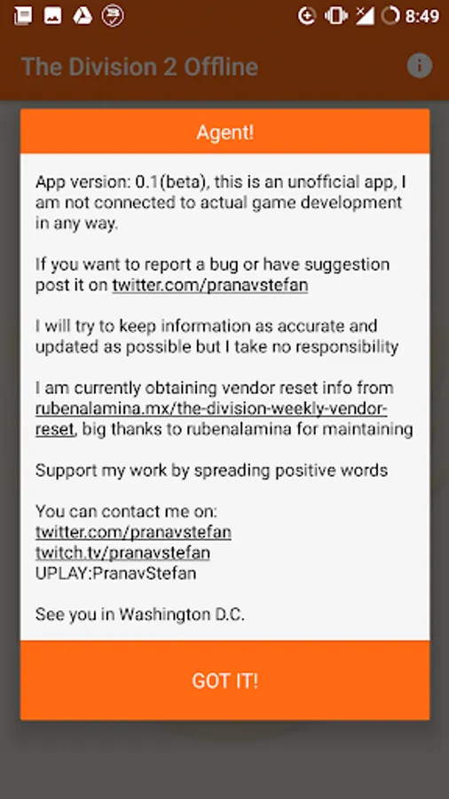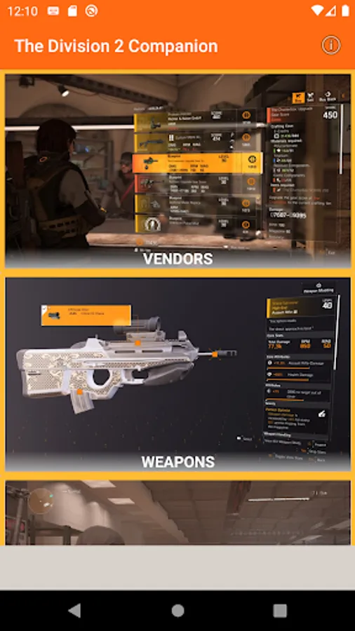 This is my attempt to create companion app for Ubisoft's new game Tom Clancy's The Division 2. This app currently has weekly vendor reset information and information about weapons, gears, gearsets, talents as per warlords of new york expansion in Tom Clancy's The Division 2.