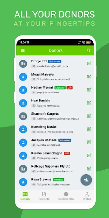 Fundraisers, Charities and Non-profits need a way to keep track of their donor information and issue receipts on the move, but this is difficult to do manually. ActiveDonor Mobile takes the pain out of donor management and receipting with its easy to use, mobile friendly interface. With ActiveDonor Mobile you can quickly and effectively manage and connect with your donors, issue donation receipts and access Section 18A tax certificates where ever you are.