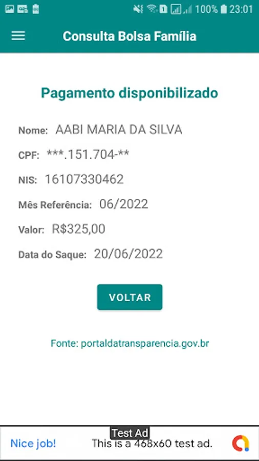In this application you can consult payments received from Bolsa Família and BPC (Continued Provision Benefit). If you have the citizen card, you can get paid for it.