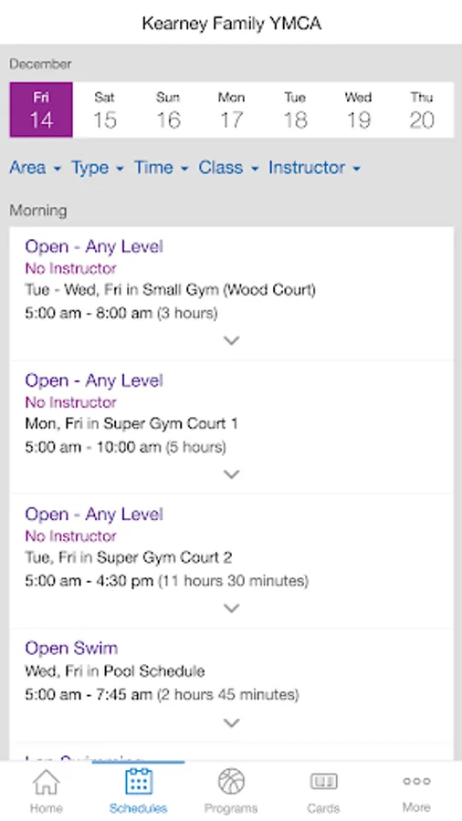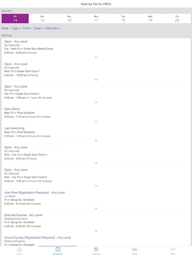 • Easily view schedules for each day and filter for the types of classes that you like.