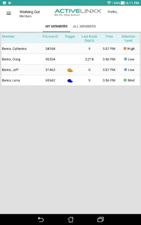 The ActiveLinxx Trainer Station tablet app is the hub of communication between fitness staff and exercise enthusiasts. With the alTrainer app, instructors can view users working out on the FitLinxx System™ exercise tracking database to flag those in need of assistance; message directly with exercisers to provide additional coaching and motivation; and at the click of a fingertip, display at-a-glance workout report cards. ActiveLinxx alTrainer (level 2) will offer more utilities to track and monitor the progress of exercisers, including design of custom fitness programs and wellness plans; setting automated performance triggers; drilled-down workout history reports; and many more tools to strengthen engagement anytime, anywhere.