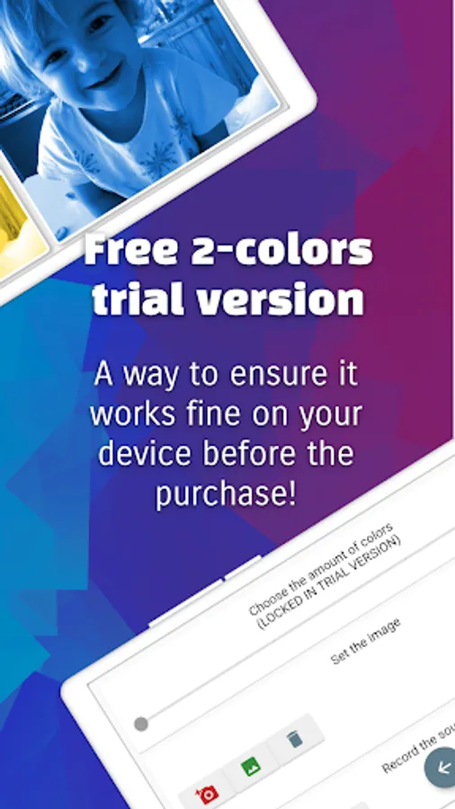 This is a simple colors learning game in which you can set a customized image to be painted in several colors, and then record the sound of your voice asking your child to look for each one.